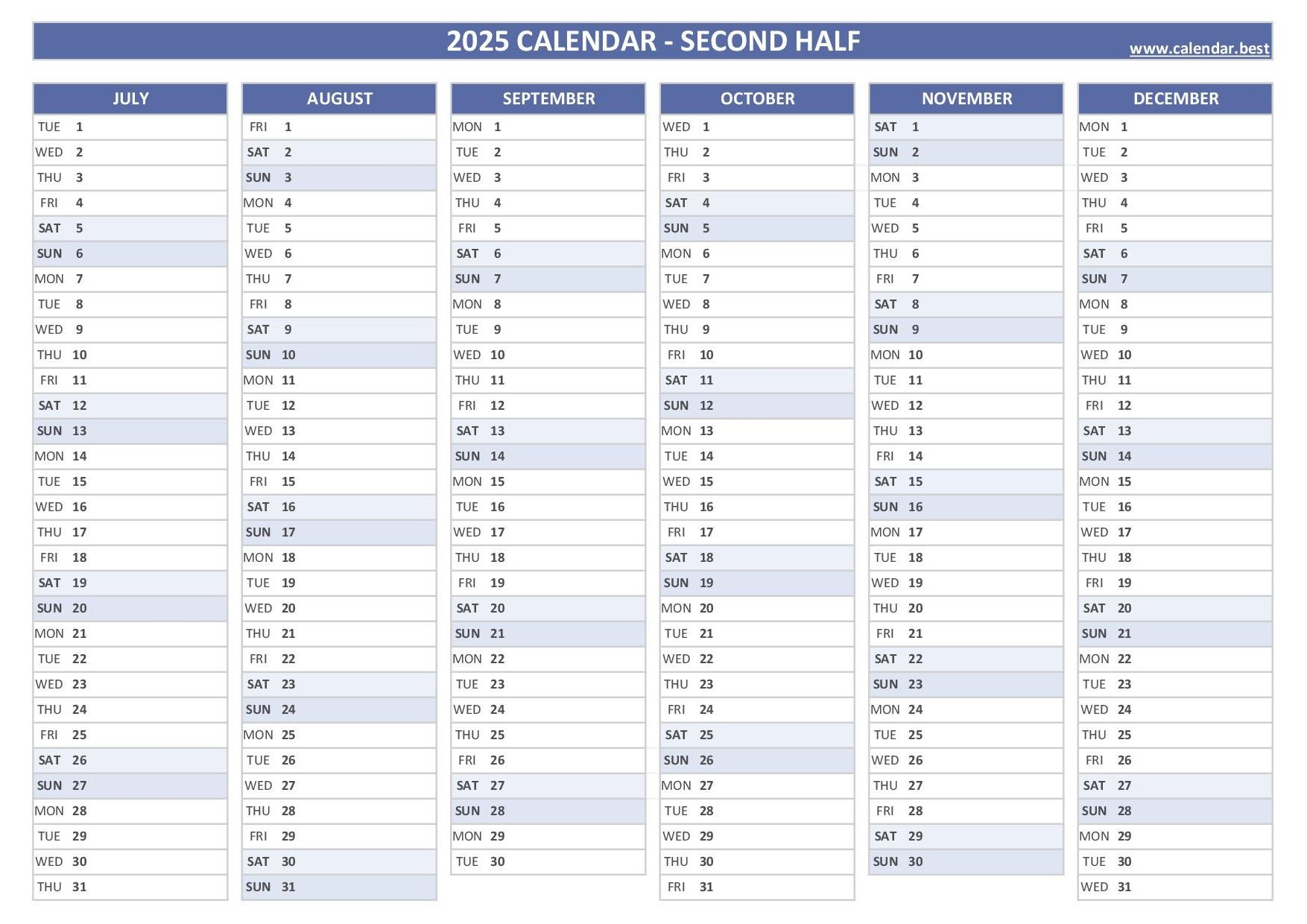 Free Download Printable Calendar 2025 Month In A Column Half A Year Per Page