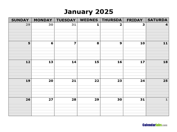 2025 Yearly Calendar With Blank Notes Free Printable Templates