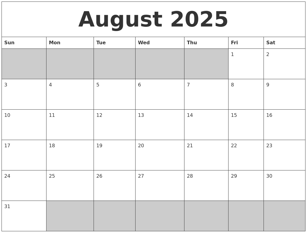 August 2025 Blank Printable Calendar