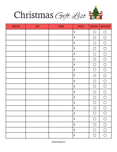 Whether you prefer to shop online or in-store, having a printable Christmas list can make your life so much easier. You can categorize gifts by recipient, set a budget for each person, and check off items as you go along.