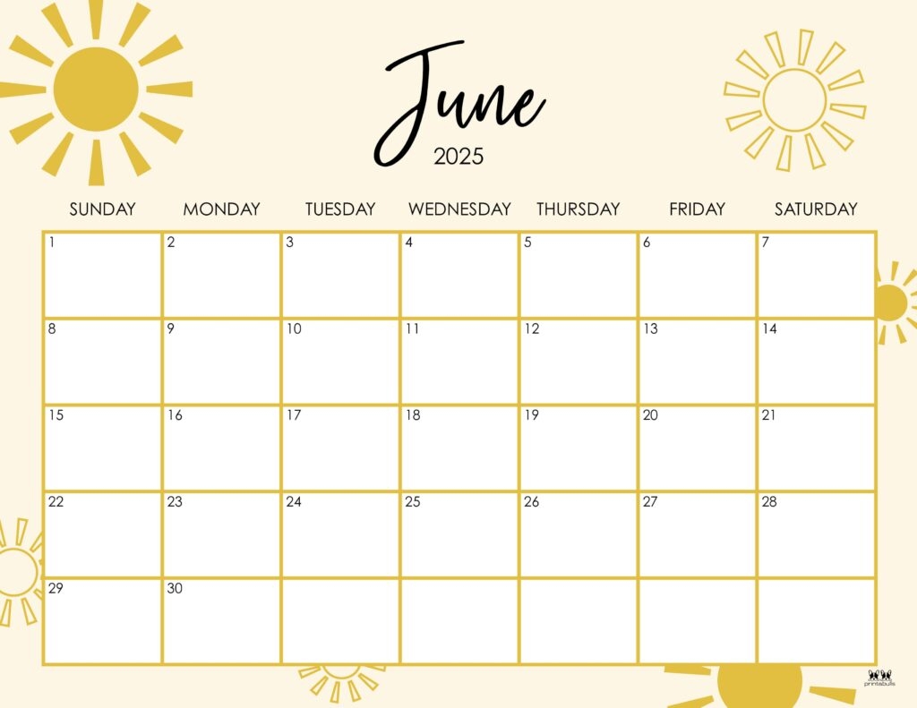 June 2025 Calendars 107 FREE Printables Printabulls