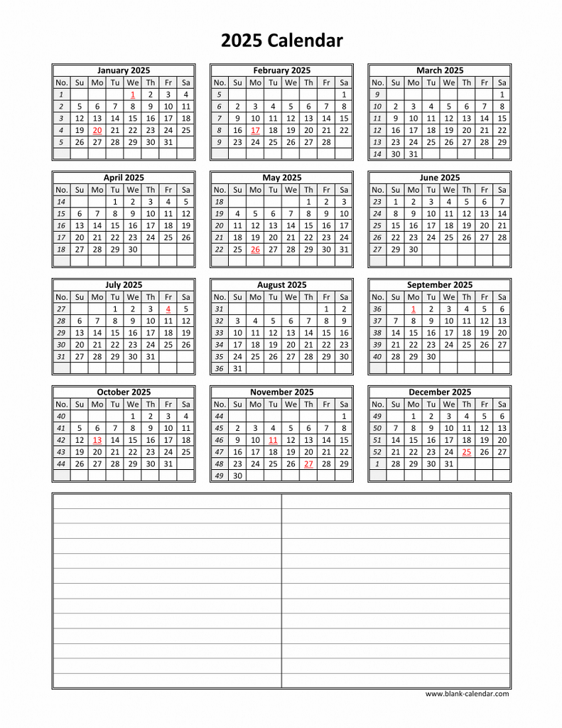 Download Blank Calendar 2025 With Space For Notes 12 Months On One Page Vertical