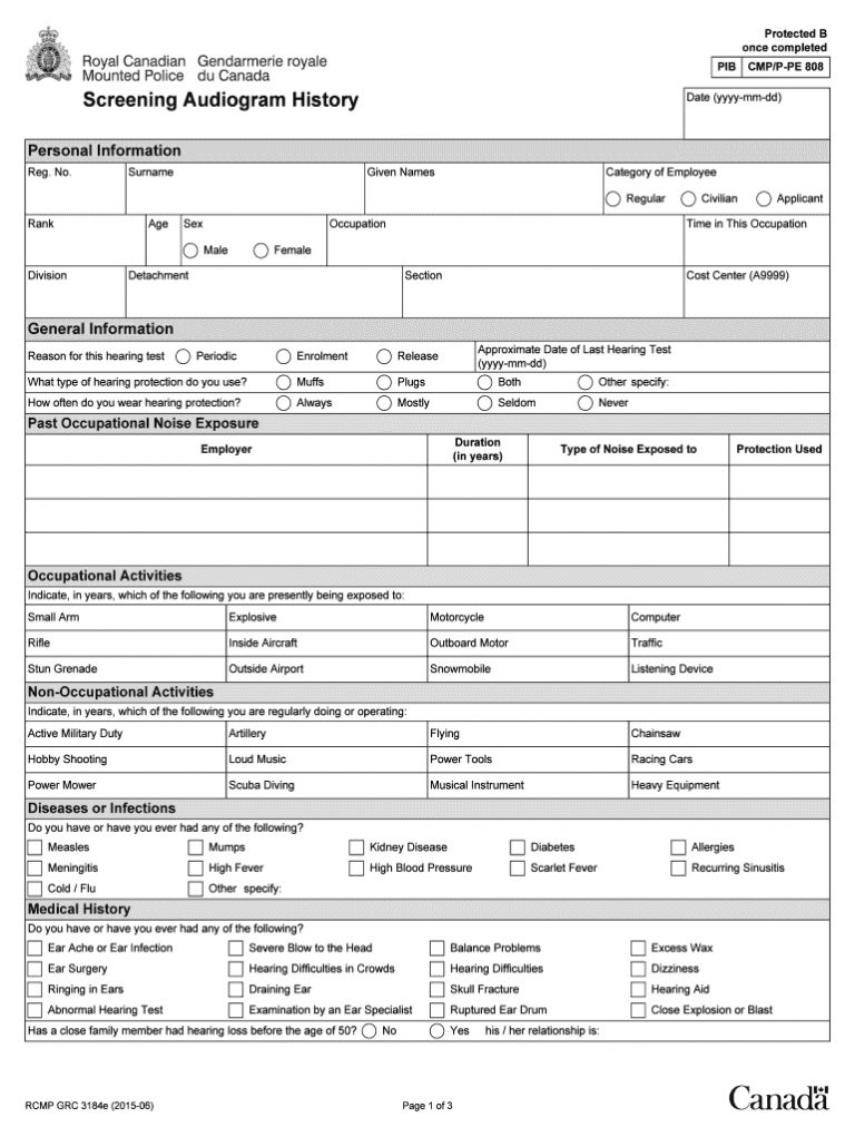 Rcmp Hearing Test Form Fill Online Printable Fillable Blank With Blank