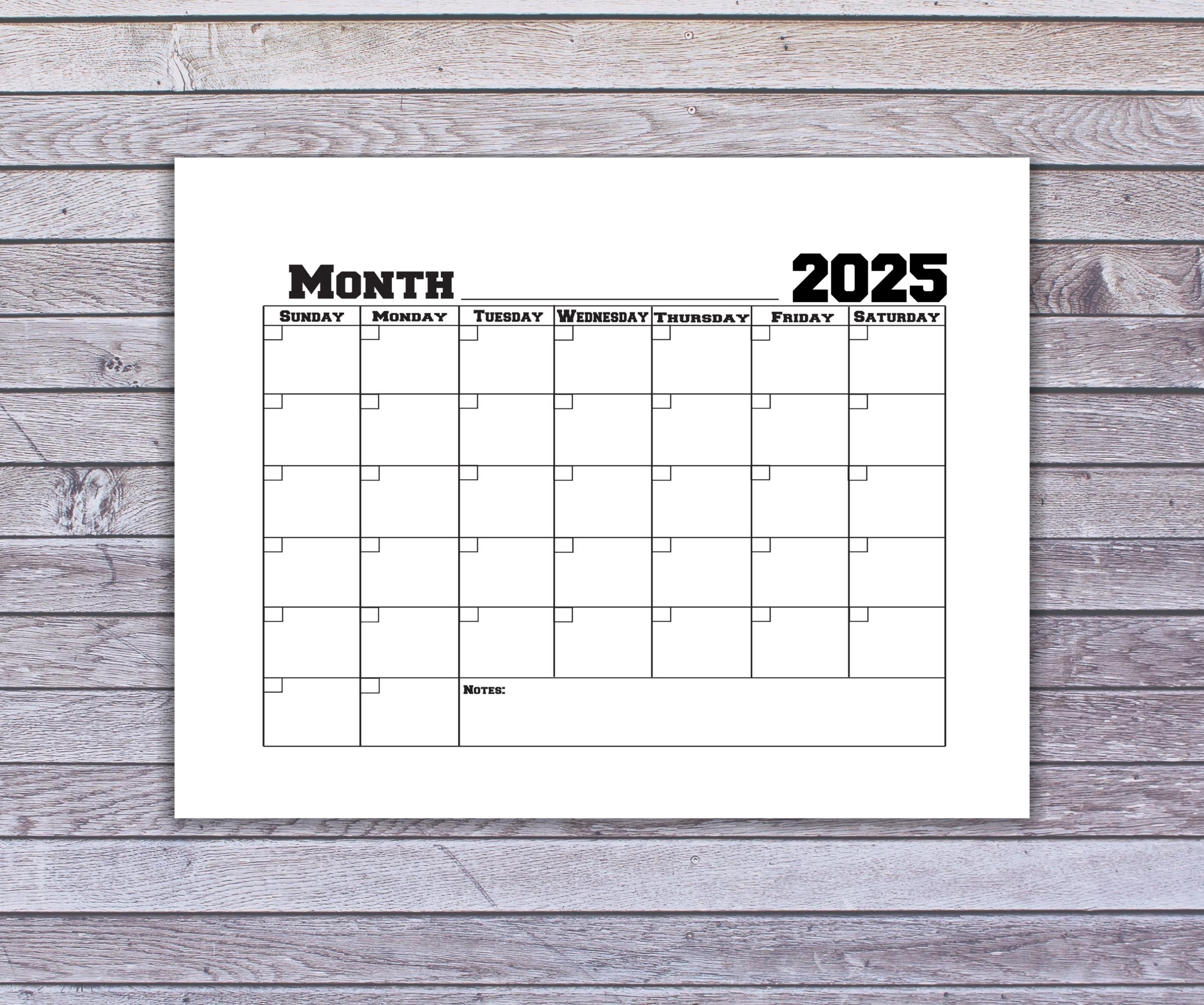 Printable Blank Calendar 2025