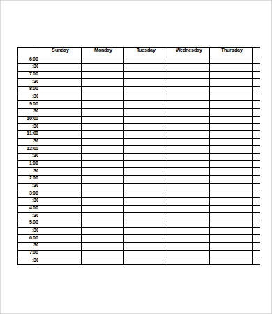 Printable Blank Hourly Schedule