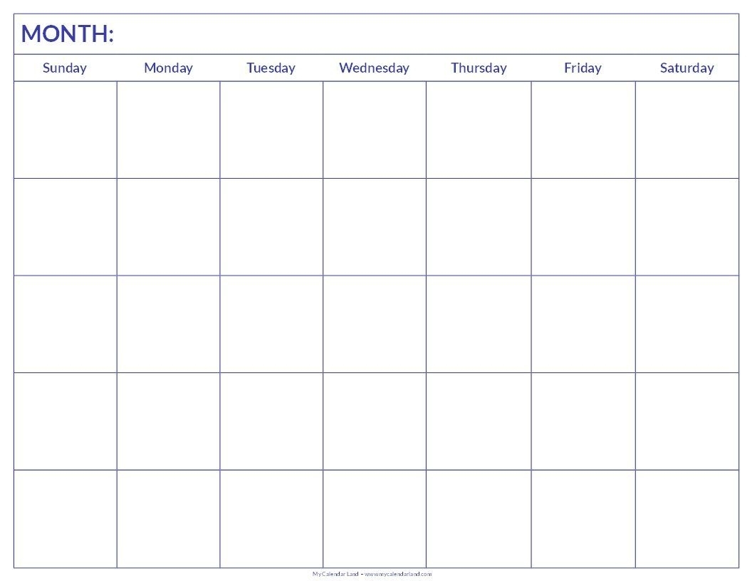 Monthly Calendar Blank Printable